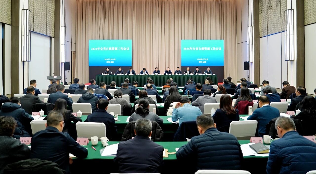 1月22日,2026年全省自然资源工作会议在成都召开。会议坚持以习近平新时代中国特色社会主义思想为指导,深入贯彻落实党的二十届四中全会精神,认真落实省委十二届八次全会精神和全国自然资源工作会议部署要求,全面总结2025年工作,谋划部署2026年重点任务。