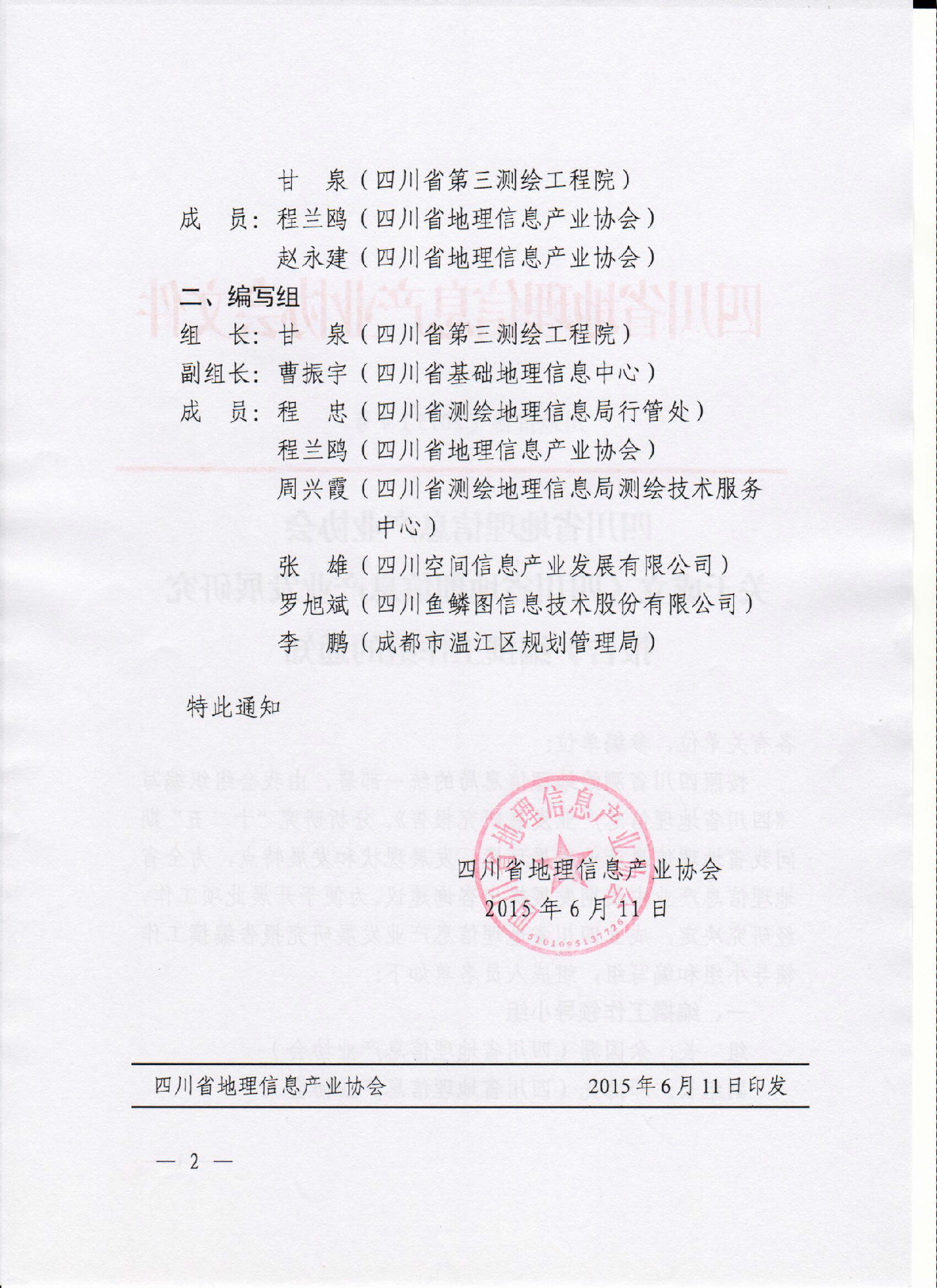 关于成立《四川省地理信息产业发展研究报告》编撰工作组通知
