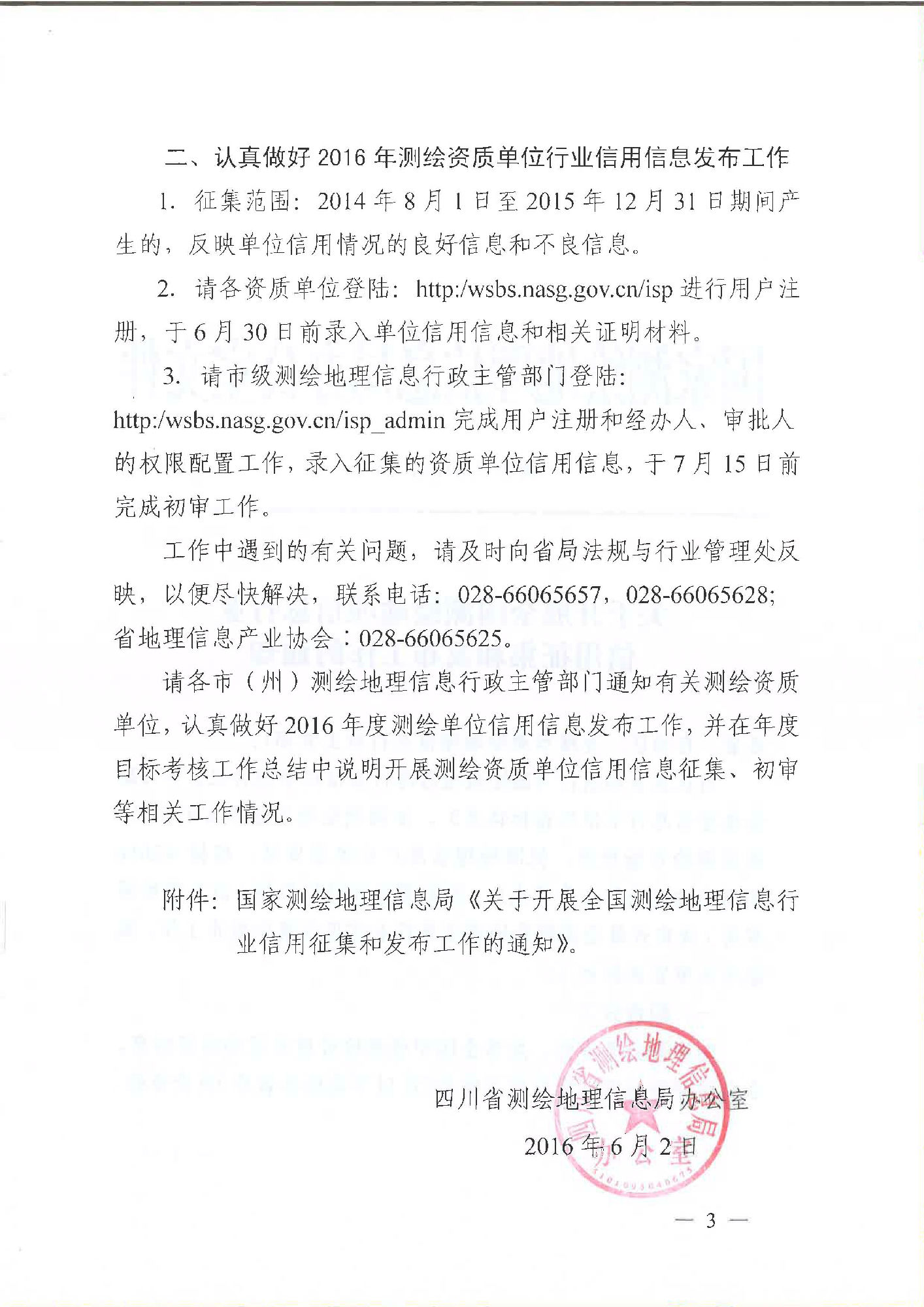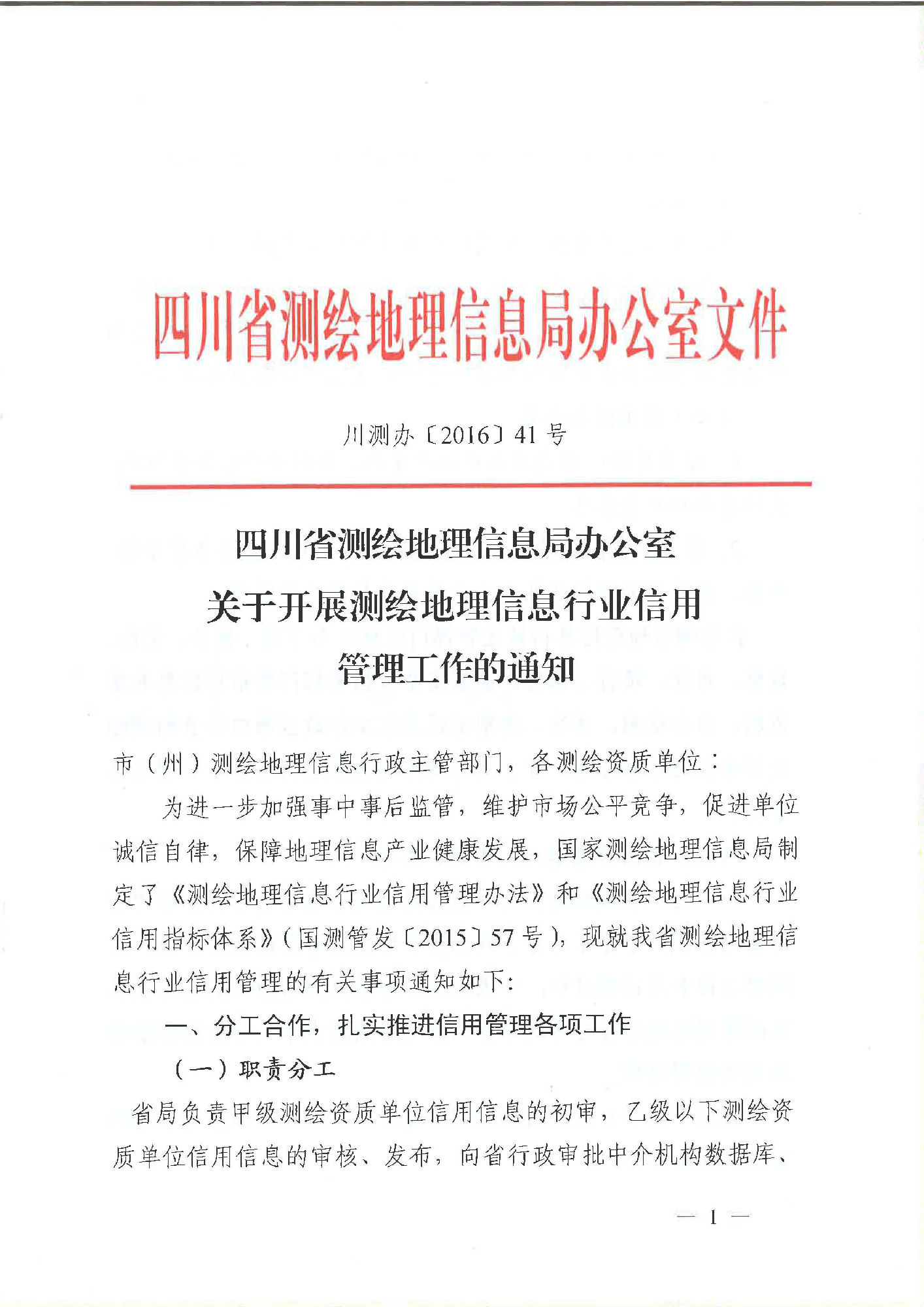 四川省测绘地理信息局办公室关于开展测绘地理信息行业信用管理工作的通知