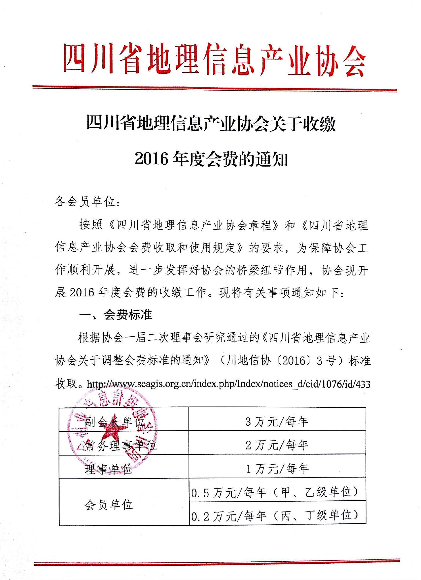 四川省地理信息产业协会关于收缴2016年度会费的通知