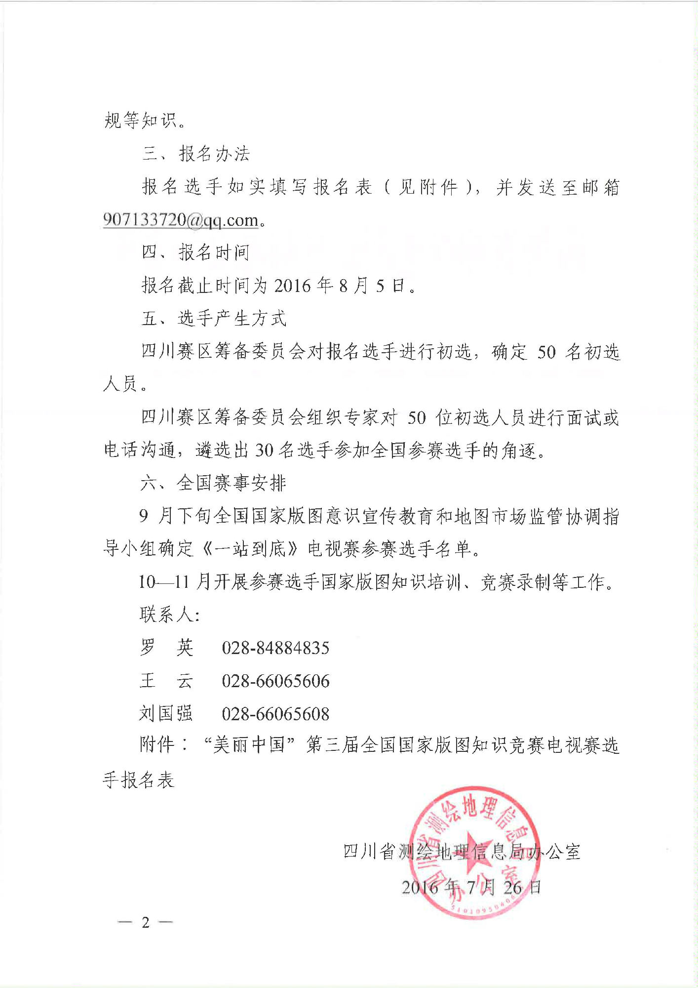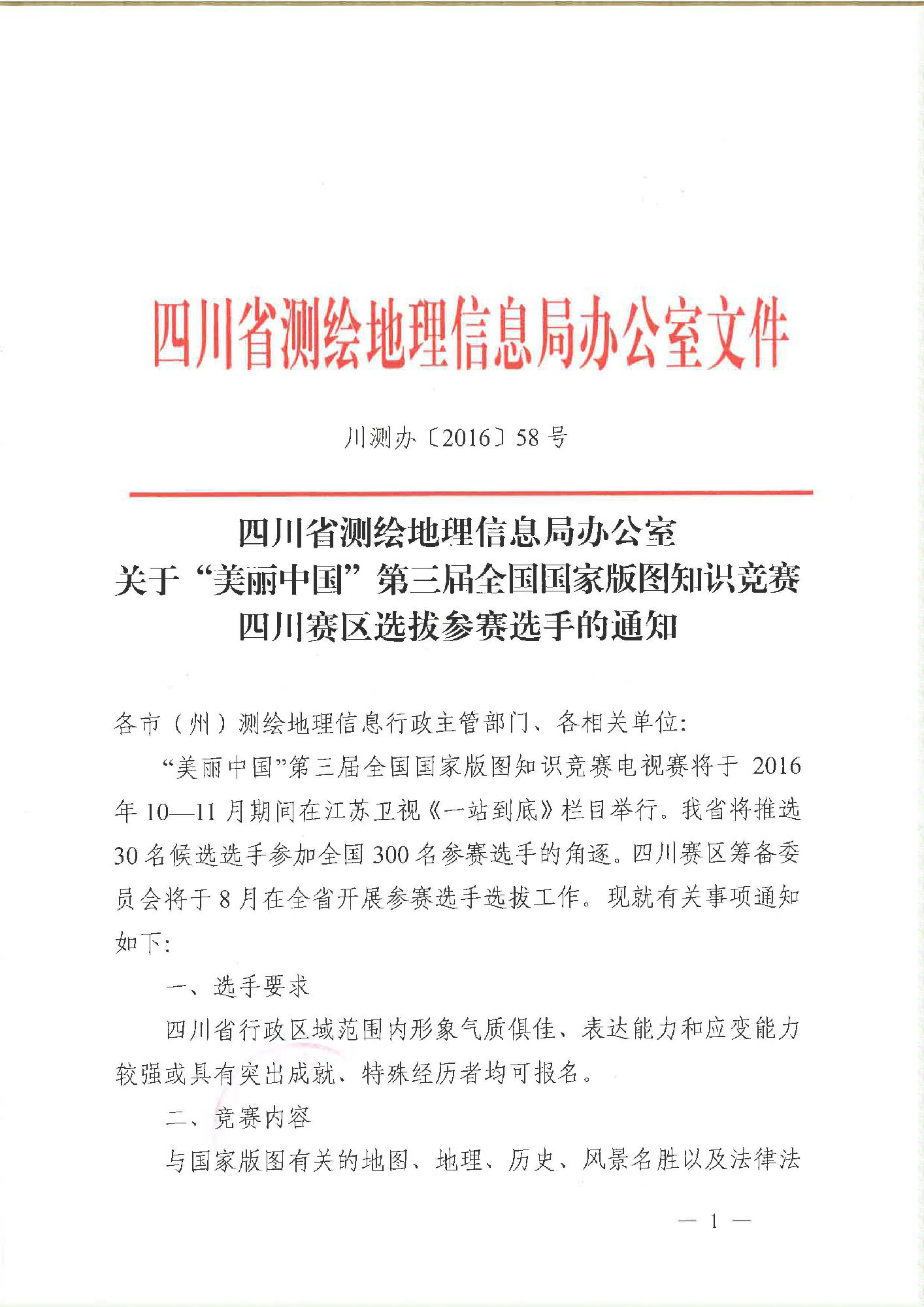 四川省测绘地理信息局办公室关于“美丽中国”第三届全国国家版图知识竞赛四川赛区选拔参赛选手的通知