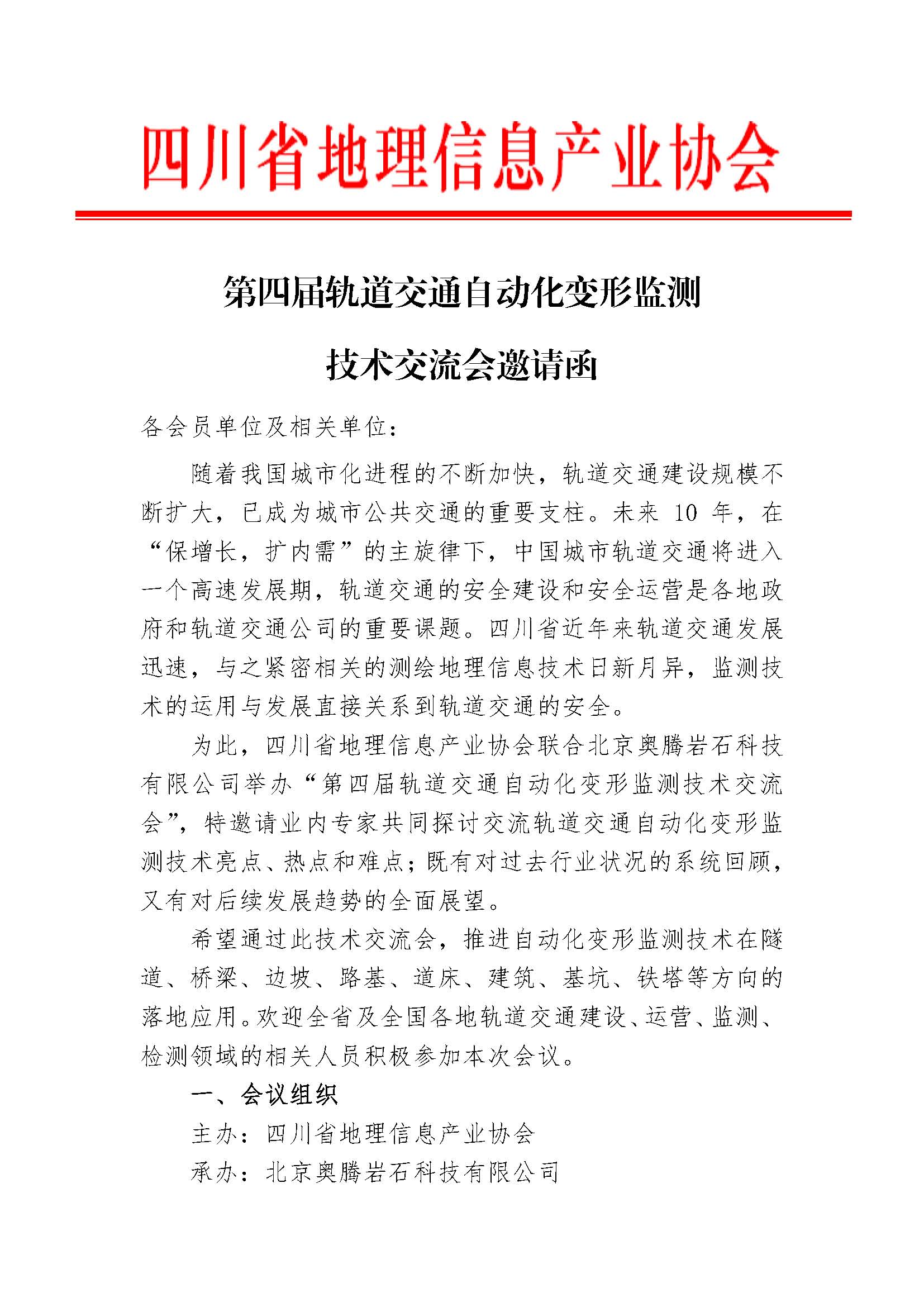 第四届轨道交通自动化变形监测技术交流会邀请函