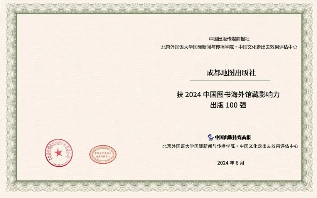 成都地图出版社荣获2024中国图书海外馆藏影响力出版100强