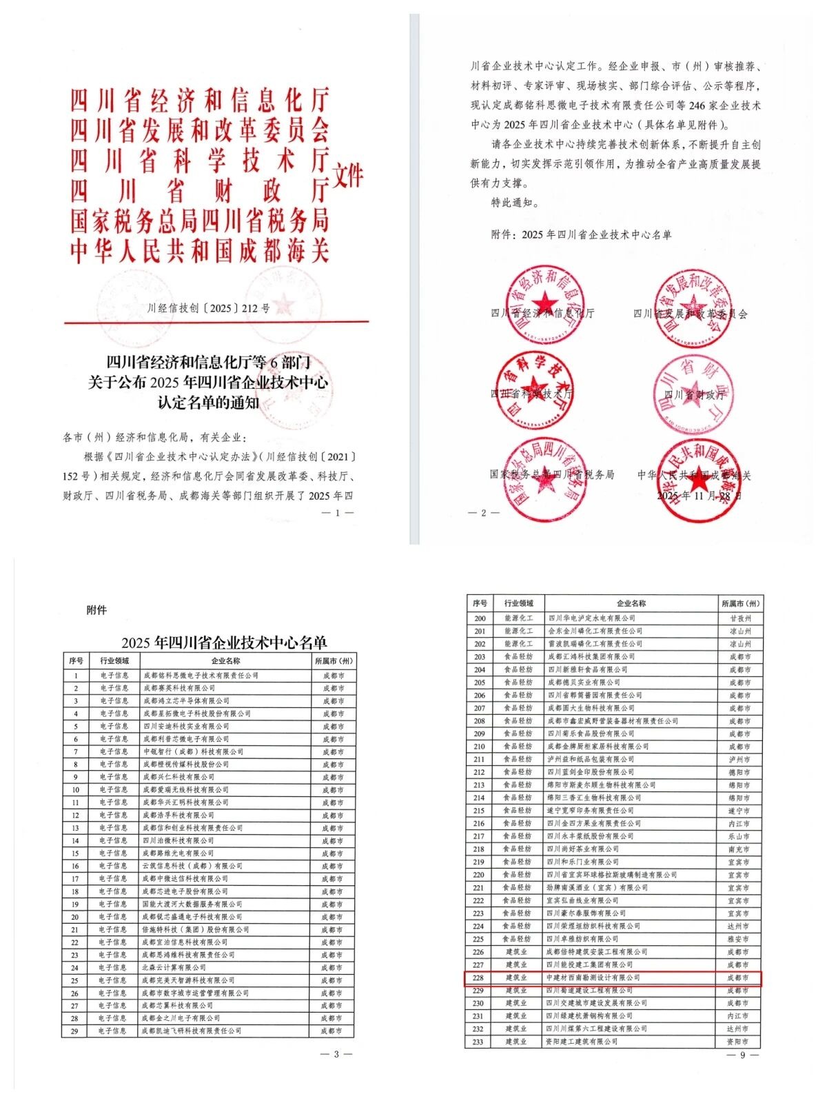 “四川省企业技术中心”是省内技术创新体系中最具权威的省级认定平台,旨在强化企业创新主体地位,鼓励行业领先企业持续加大研发投入、完善创新机制、培育人才团队。获得该认定,代表企业在技术研发能力、创新管理水平、成果产业化应用等方面均达到省内领先、国内先进水平。